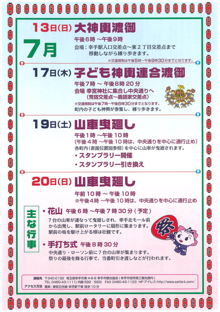 300年を超える歴史と伝統を誇り、幸手の夏を熱気で包み込むのが八坂神社の夏祭りです。